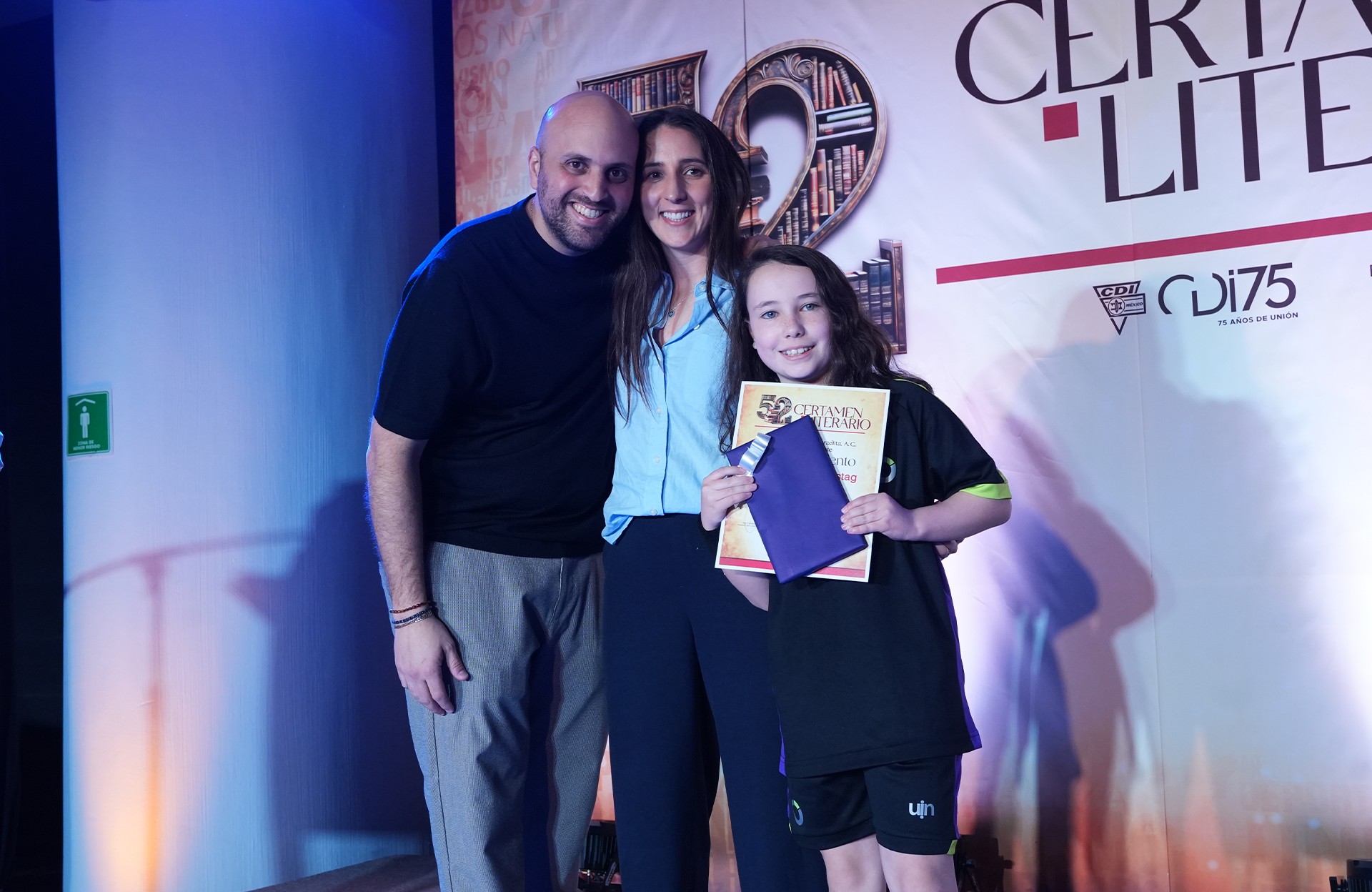 Mención honorífica: Familia de tres de la autora May Micha Achar de la Escuela Yavne con el seudónimo La luz que me enseñó la realidad.