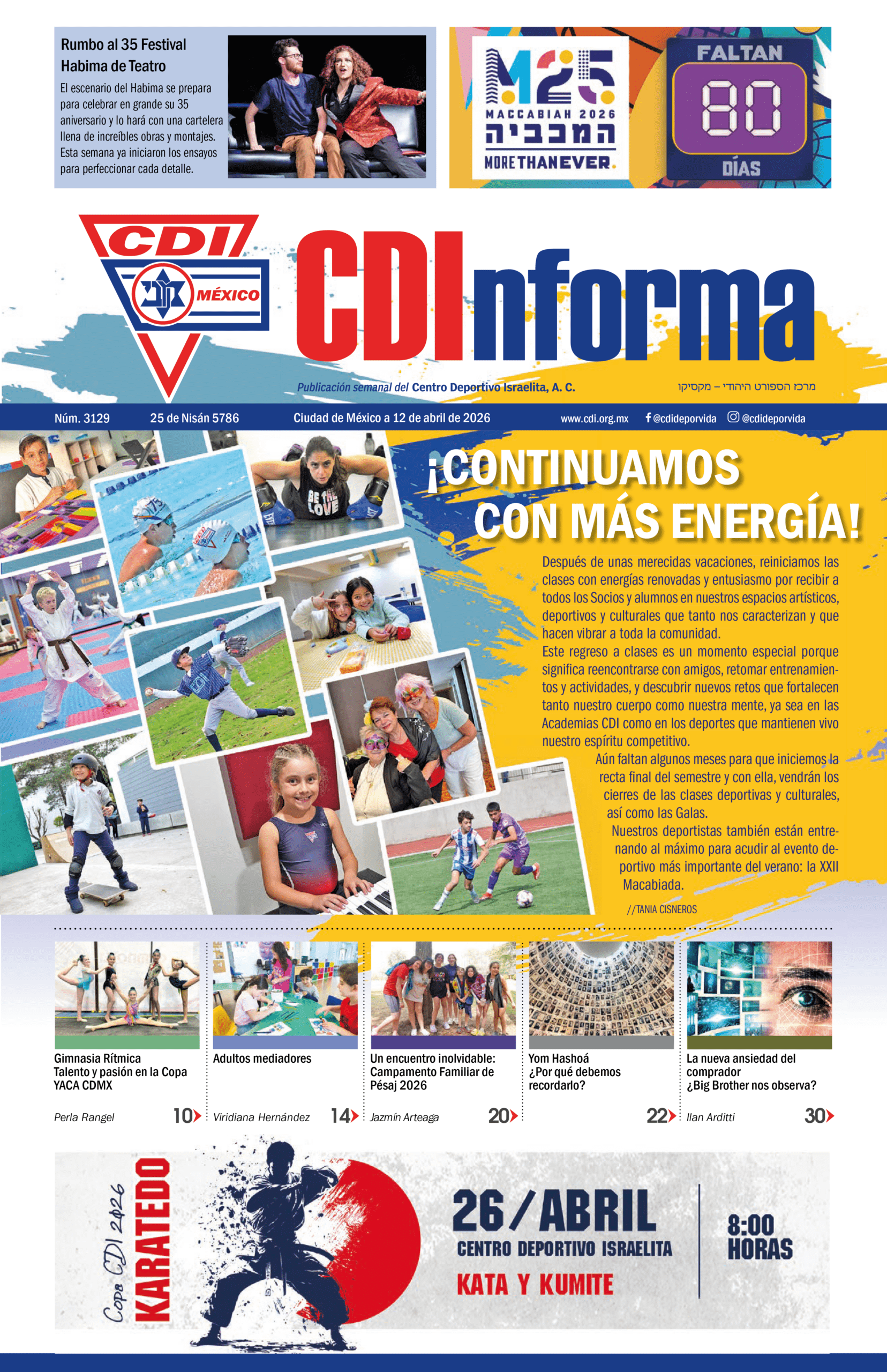 El Centro Deportivo Israelita inicia su nuevo ciclo de actividades, talleres y clases, ¡y queremos que seas parte de esta experiencia única! Los Comités de Fomento Deportivo y de Actividades tienen todo listo para que disfrutes lo que más te gusta… ¡y descubras nuevas pasiones!