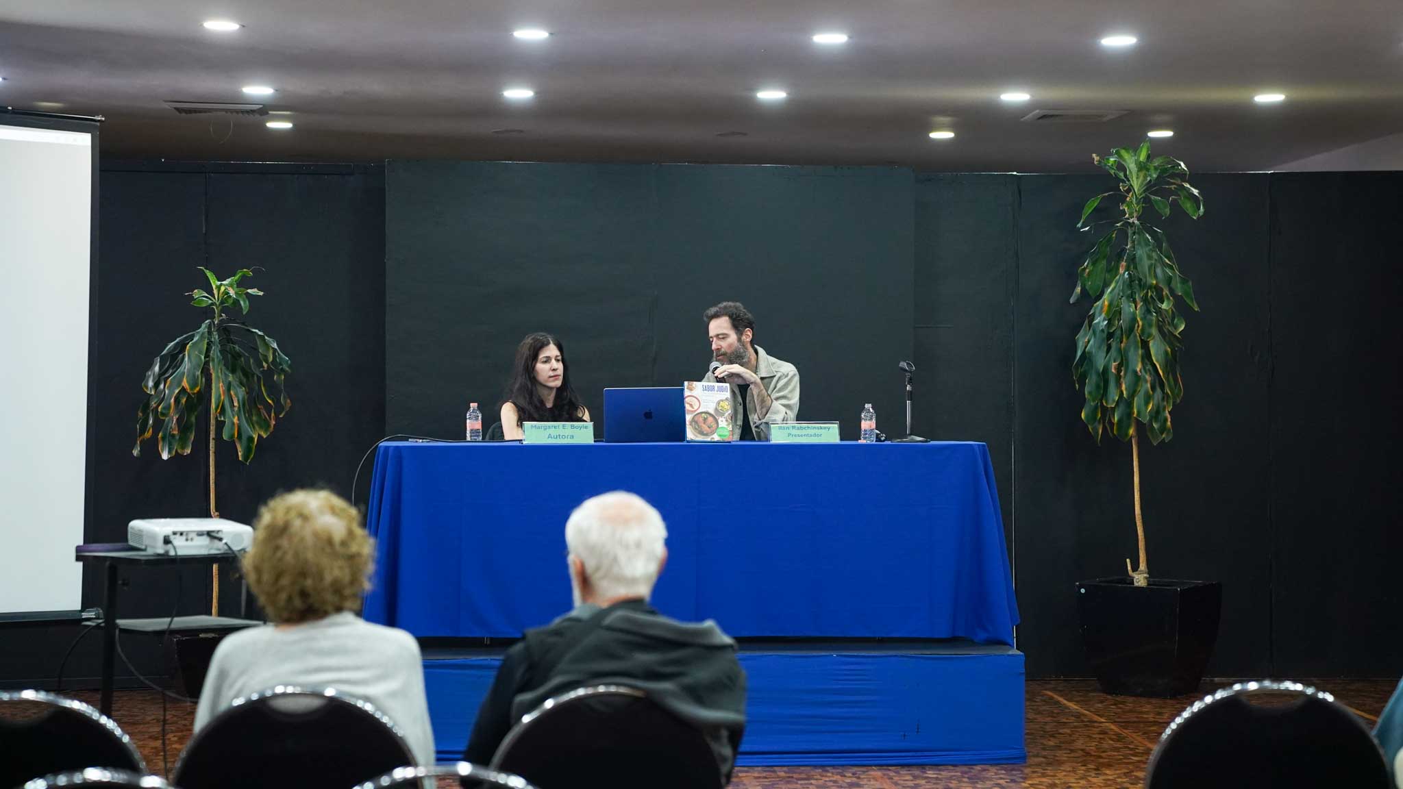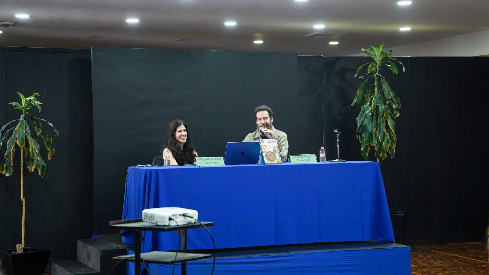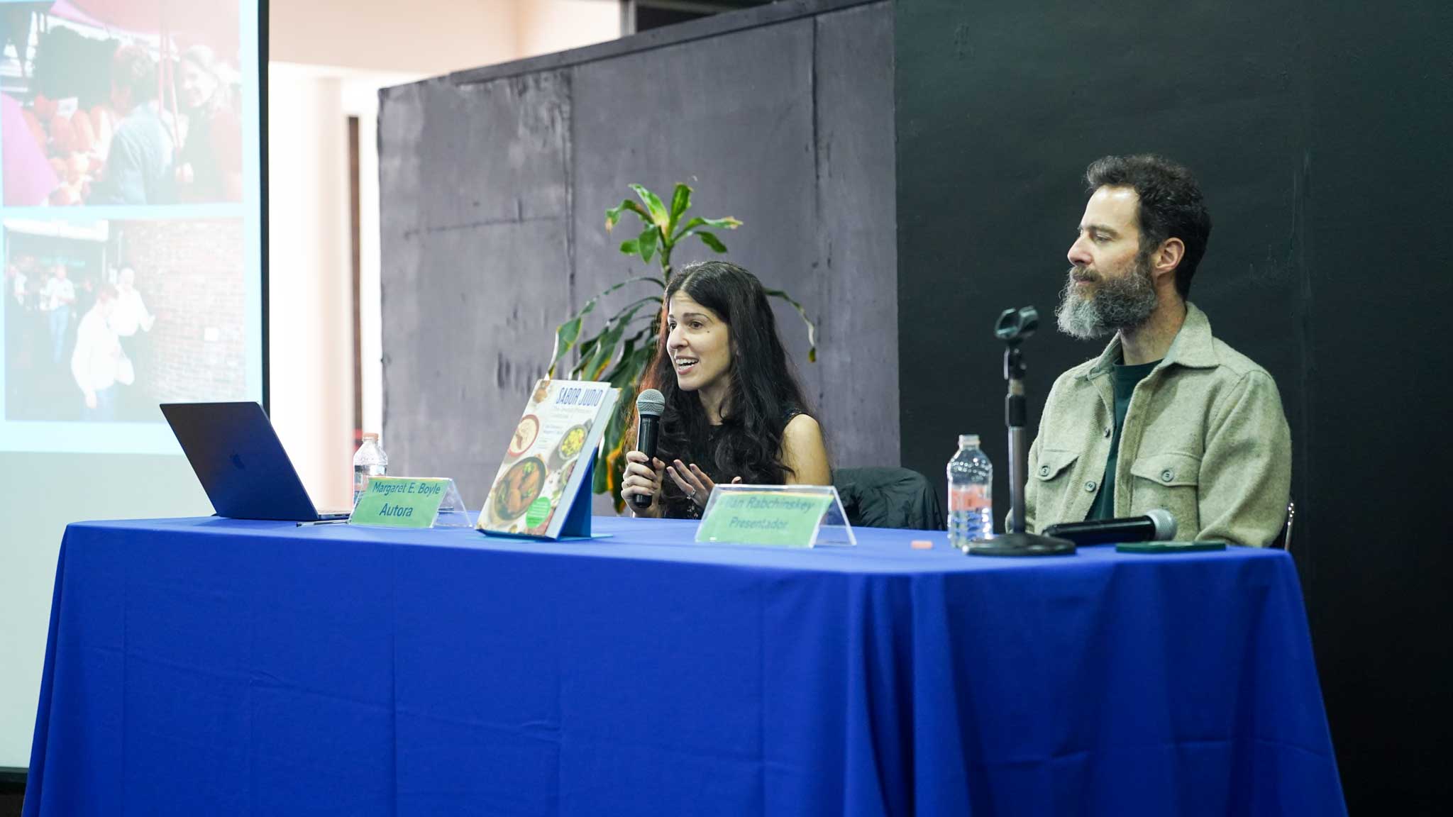 Los autores, Ilan Stavans y Margaret E. Boyle, compartieron con el público la esencia detrás de Sabor Judío: una recopilación que fusiona herencia, identidad y sabor, mostrando la diversidad y profundidad de la cocina judía en México. La presentación estuvo a cargo de Margaret E. Boyle e Ilan Rabchinskey, quienes ofrecieron una charla enriquecedora sobre el proceso creativo, la importancia de preservar estas recetas y el valor de la comida como elemento que une y narra la historia de una comunidad.