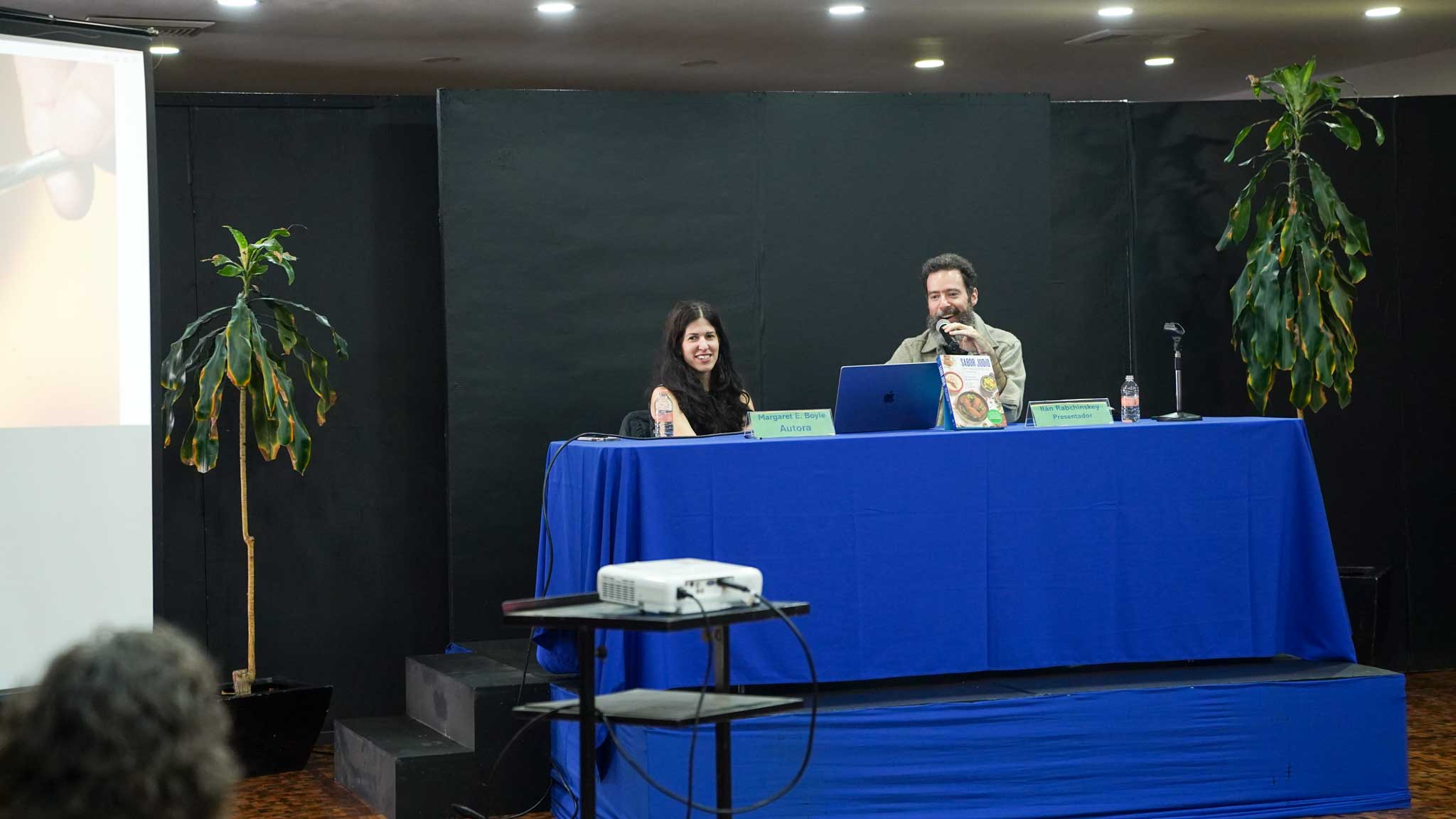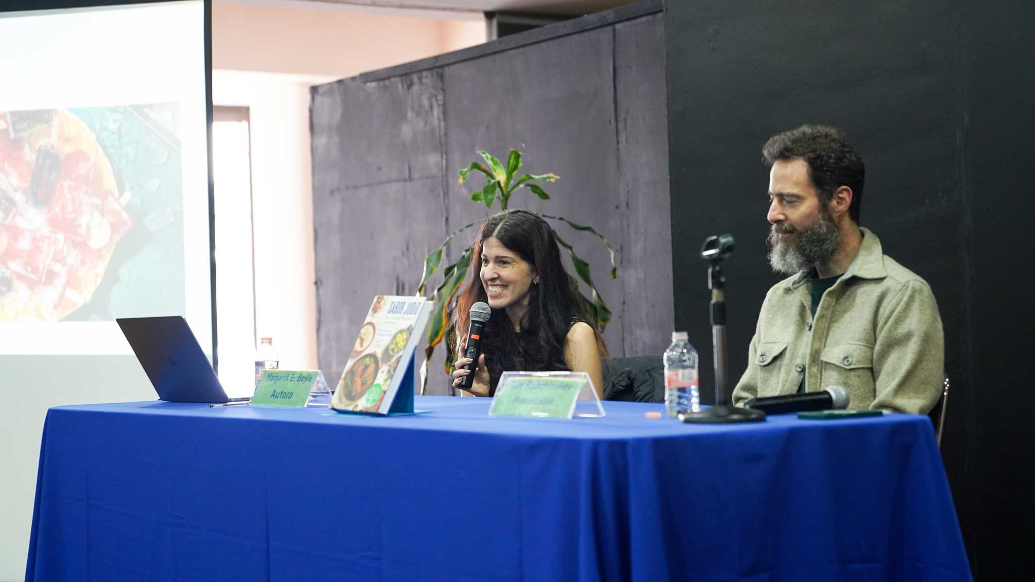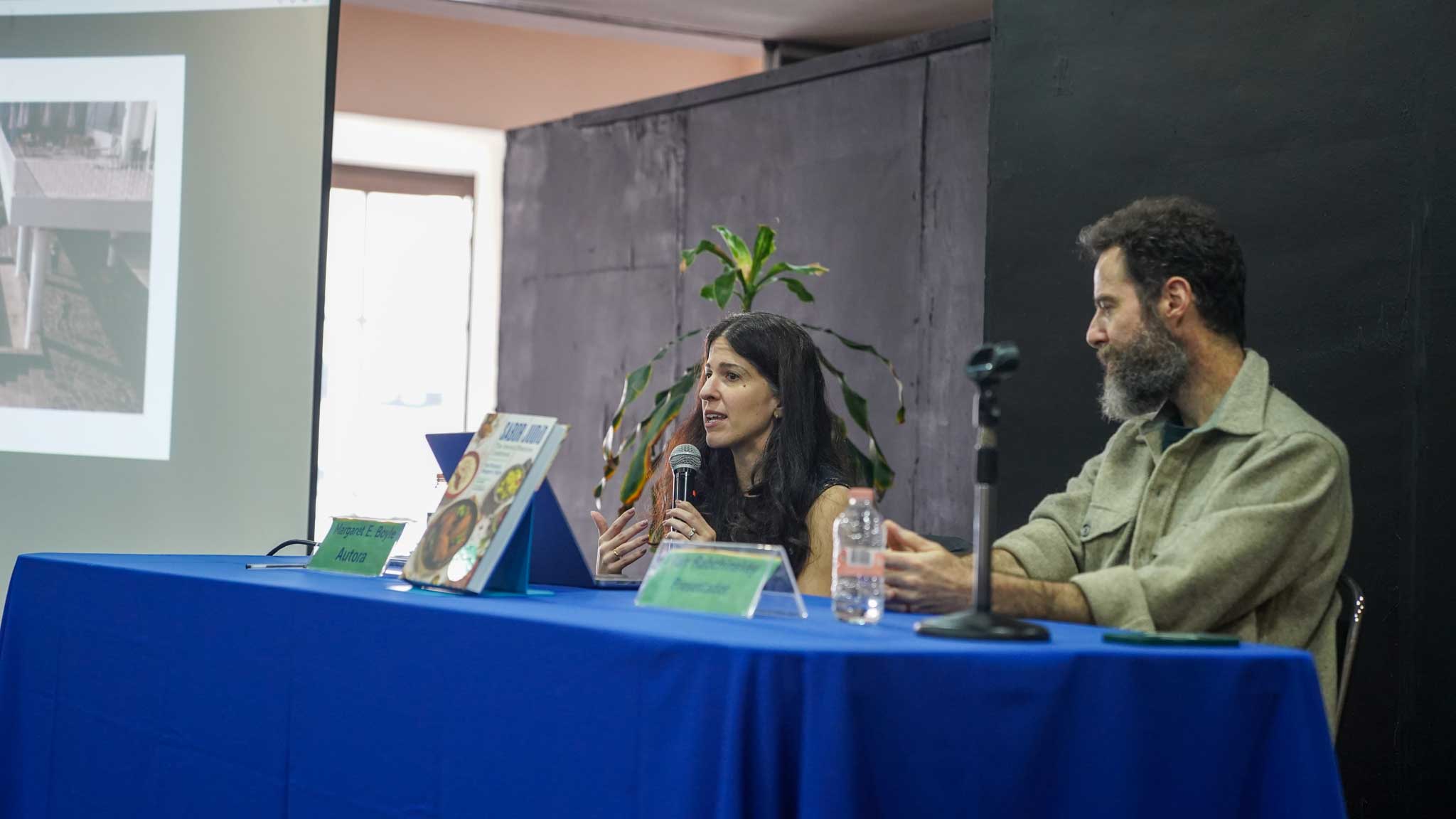 Los autores, Ilan Stavans y Margaret E. Boyle, compartieron con el público la esencia detrás de Sabor Judío: una recopilación que fusiona herencia, identidad y sabor, mostrando la diversidad y profundidad de la cocina judía en México. La presentación estuvo a cargo de Margaret E. Boyle e Ilan Rabchinskey, quienes ofrecieron una charla enriquecedora sobre el proceso creativo, la importancia de preservar estas recetas y el valor de la comida como elemento que une y narra la historia de una comunidad.