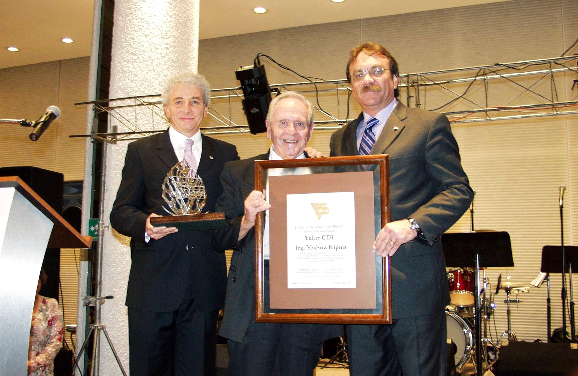 El primer galardonado con este premio fue el Ing. Joshua Kipnis Z”L, en agradecimiento a su invaluable trabajo en el Centro Deportivo Israelita y por su apoyo para el reconocimiento nacional e internacional de nuestra Institución. Su carrera voluntaria empezó en 1961 y se extendió hasta el año 2006, en distintos puestos en el Comité Ejecutivo y el Consejo Directivo del CDI. Fue Presidente del Comité Macabiada en 1969, 1973 y 1989; y Presidente del Comité Organizador de la Juegos Macabeos Panamericanos en México en 1979. Asimismo, recibió el reconocimiento Yakir Macabi en 1993.
